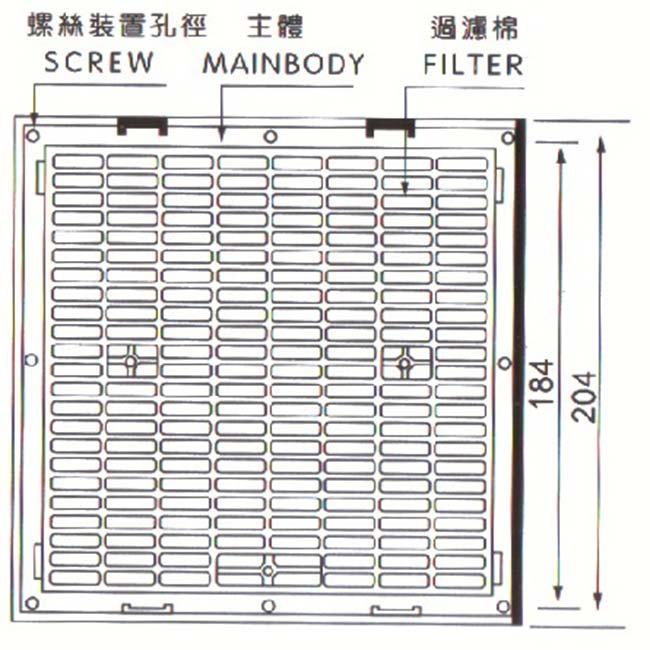 過濾器的塑膠材質為阻燃ABS樹脂,他具有抗紫外線及靜電的優點,過濾網選用進口的尼龍纖維全順民料,除塵率達88%,有效的阻止粉塵進入控制柜內部,而影響電氣原件的使用壽命。